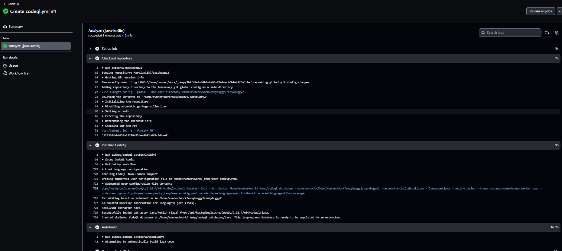 <figure><img src="https://2615529102-files.gitbook.io/~/files/v0/b/gitbook-x-prod.appspot.com/o/spaces%2F997kcgdjxml4NiriygeG%2Fuploads%2Fgit-blob-061d82218104f411cf535da0f8ff3c9fbe1584ae%2F9%20(1).png?alt=media" alt=""><figcaption><p>Successful build and analysis</p></figcaption></figure>