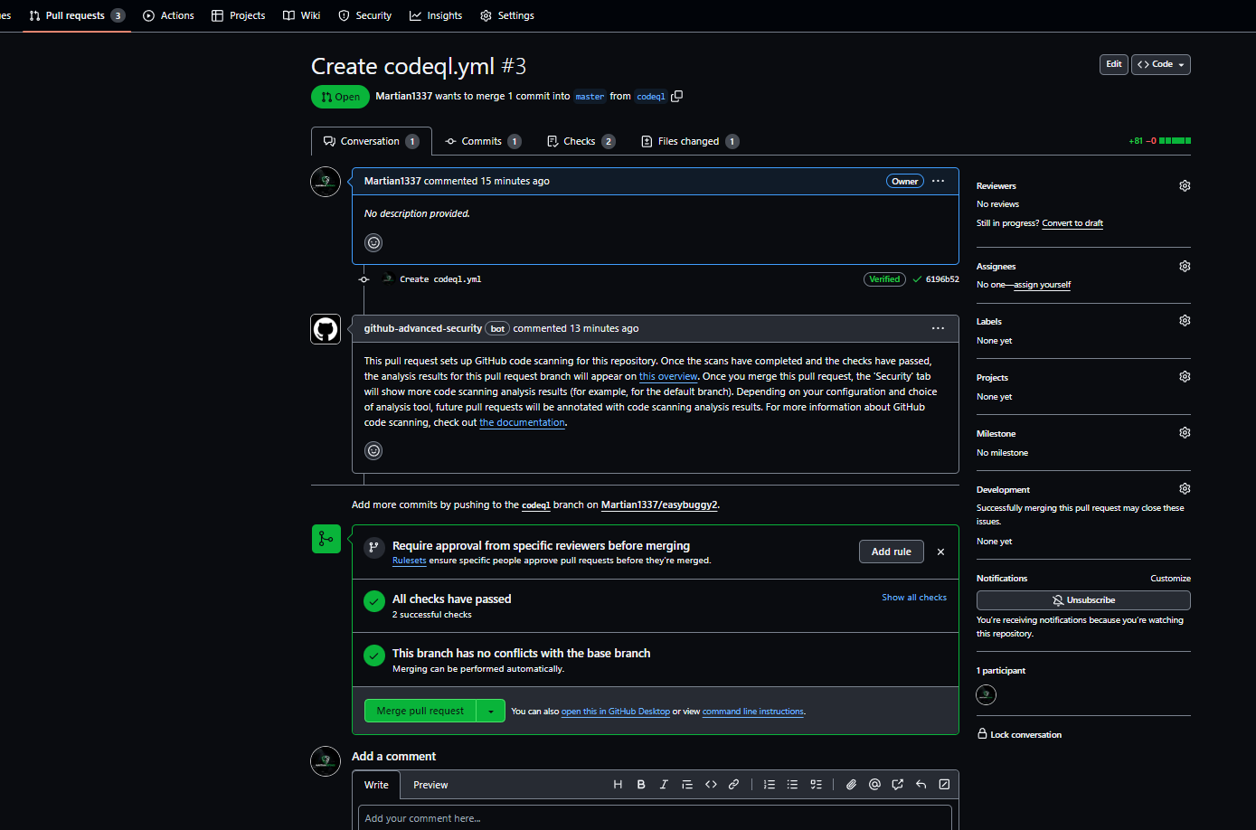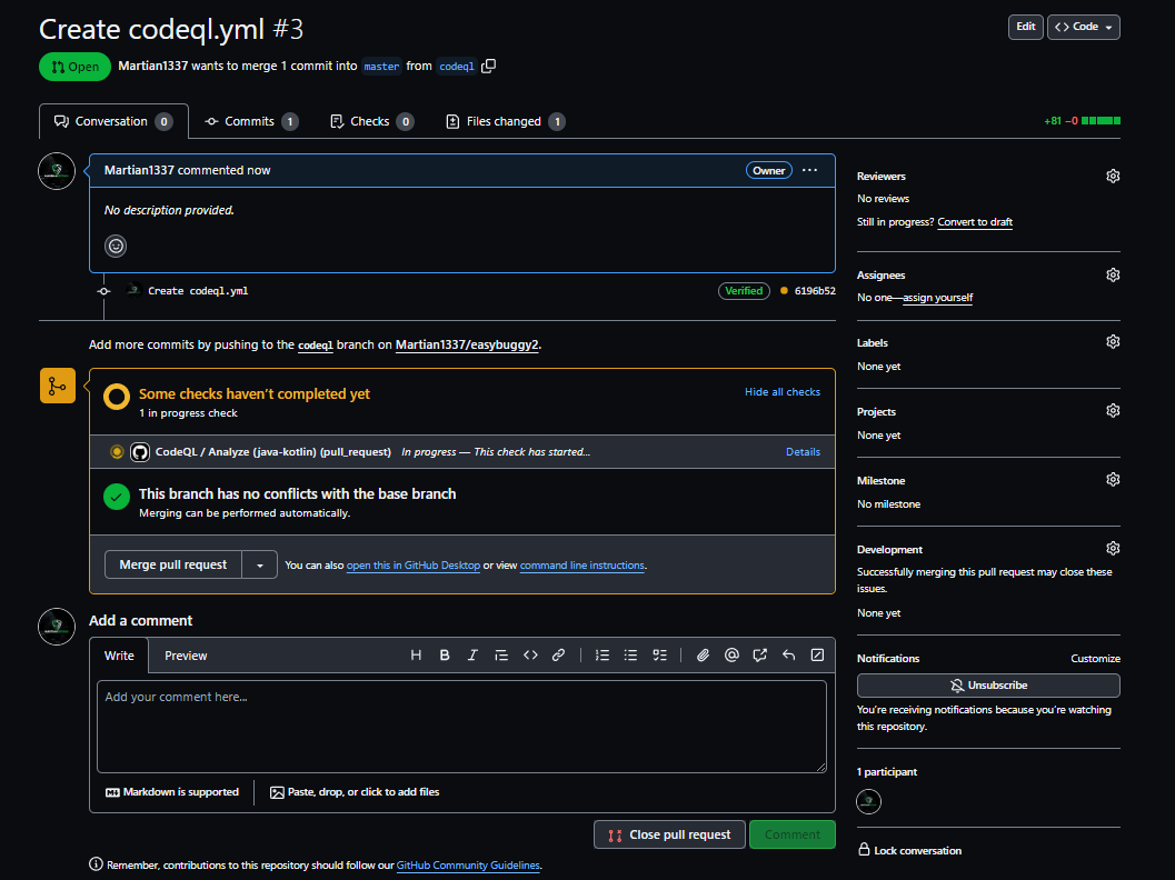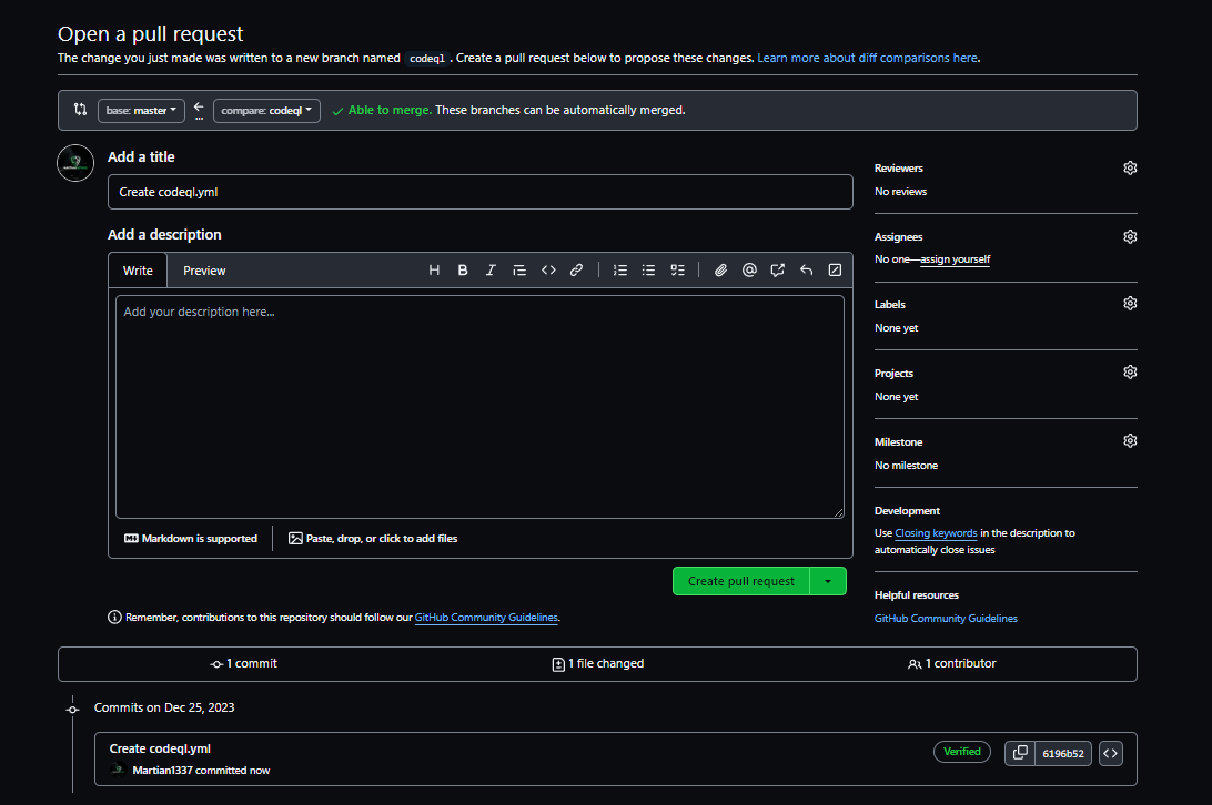 15. Now go to **Pull Requests** and merge the request into master branch for results