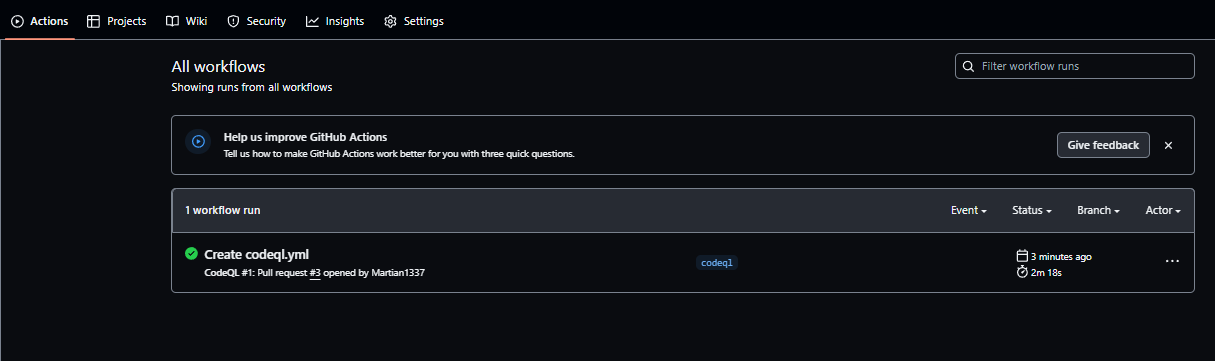 11. Visit the Actions tab when the job is complete to see the workflow runs